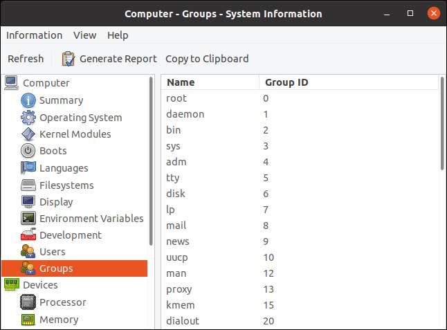 HardIfno는 주로 하드웨어 전용으로 전용되지만 하드웨어 기반이 아닌 일부 시스템 특성이 표시됩니다. 예를 들어 사용자 및 그룹에 대한 정보를 표시 할 수 있습니다.