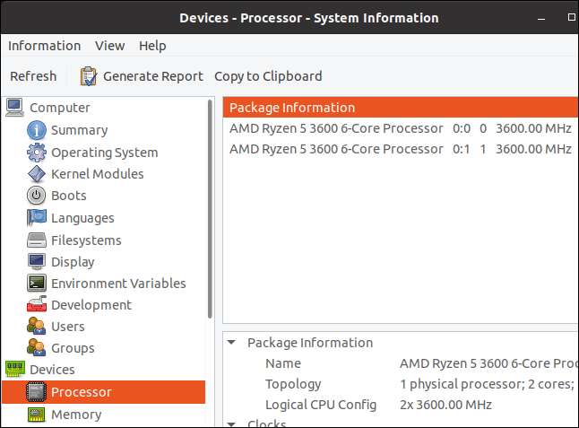 이 HardInfo 사본은 Ubuntu 가상 컴퓨터에서 실행 중이므로 일부 결과는 조금 특이한 것입니다. 가상 컴퓨터는 호스트 컴퓨터의 두 개에 액세스 할 수 있도록 만들어졌습니다. CPU 코어 ...에 따라서 CPU가 AMD Ryzen 5 3600 6 코어 CPU로 올바르게 식별되지만 두 개의 코어 만 나열됩니다.