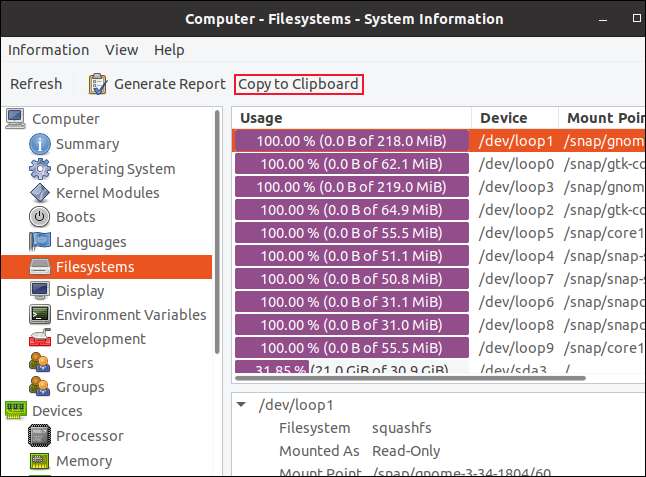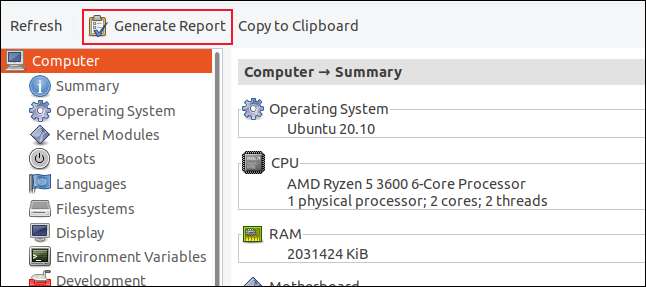 HardInfo에서 클립 보드에 복사하고 다른 응용 프로그램에 붙여 넣어 Hardinfo에서 정보의 단일 섹션을 복사 할 수 있습니다.