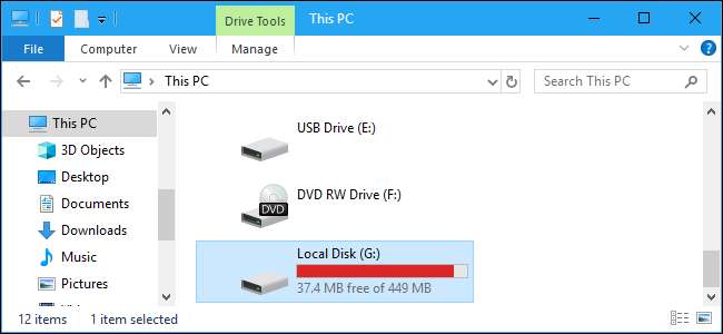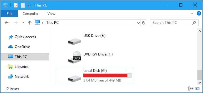 먼저 숨기려는 파티션의 드라이브 문자를 식별하십시오. 이 PC는 Windows 10의 파일 탐색기 또는 Windows 7의 Windows 탐색기의 컴퓨터에서 찾을 수 있습니다.
