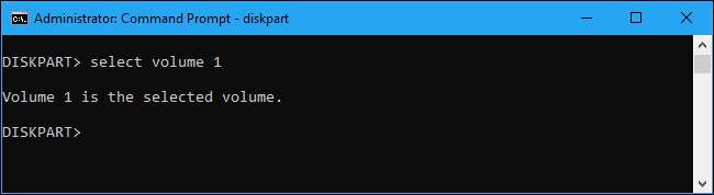 이 예에서는 볼륨 1을 선택하려고하므로 다음 명령을 실행합니다.