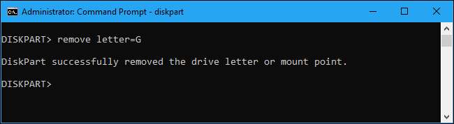다음 명령을 실행하여 드라이브 문자를 제거하고 G를 제거 할 문자로 바꿉니다.