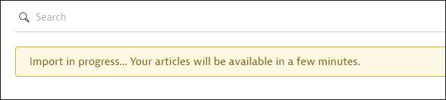 기사를 사용할 수있는 시간은 가져 오기 풀의 크기에 따라 다릅니다. 수년간 저장된 기사를 가져 오는 경우 파일을 파싱하고 가져 오는 데 몇 분 정도 걸릴 수 있습니다.