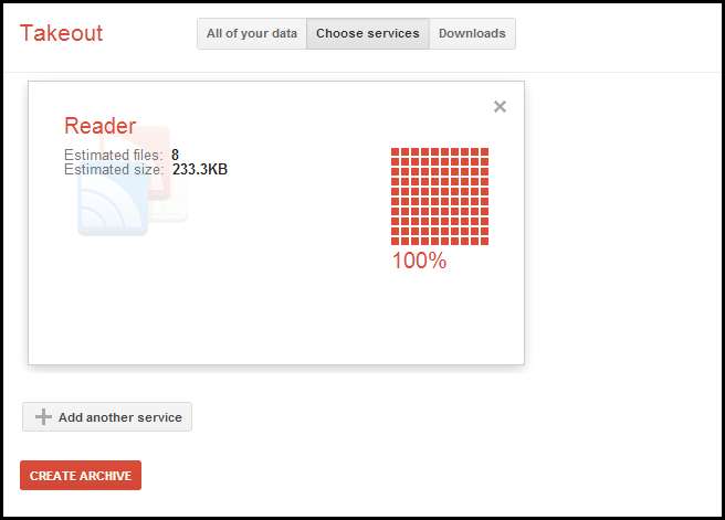 가장 먼저해야 할 일은 피드를 내보내는 것입니다. 다음으로 이동하면됩니다. 이 링크 을 클릭 한 다음 아카이브 생성 버튼을 클릭합니다.