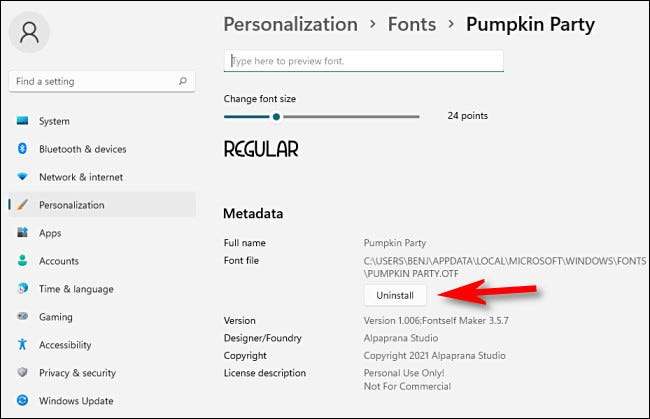 Windows는 시스템에서 글꼴을 제거합니다. 더 많은 글꼴을 제거 해야하는 경우 설정 및 GT에서 검색하십시오. 개인화 & gt; 글꼴을 넣고 프로세스를 반복합니다. 완료되면 설정을 닫습니다.