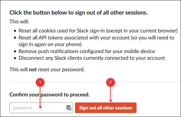 열리는 확인 패널에서 비밀번호를 입력하고 "다른 모든 세션에서 로그 아웃"을 클릭합니다.