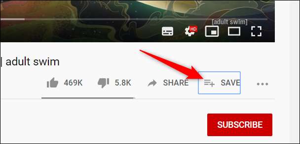 Youtube를 실행하고 비디오를 대기열에 넣은 다음 찬성 및 반대 투표 아이콘 옆에있는 "저장"버튼을 클릭합니다.