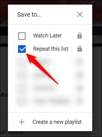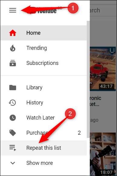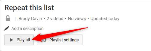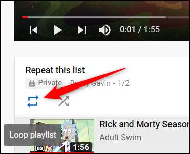 첫 번째 비디오가로드되면 아래로 스크롤하고 "루프"아이콘을 클릭하여 재생 목록을 연속 루프로 만듭니다.