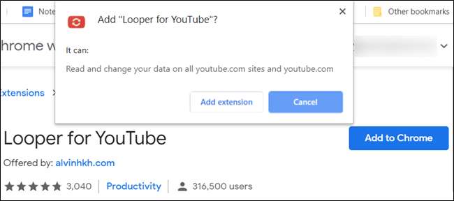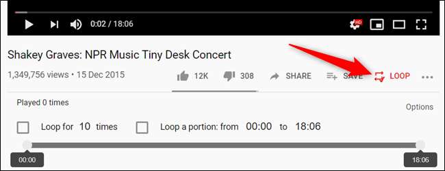 확장 프로그램이 설치되면 YouTube로 이동하여 비디오를 엽니 다. "루프"버튼을 클릭하여 비디오 루핑 메뉴를 엽니 다. 또는 키보드에서 "P"를 눌러 루프를 활성화 할 수 있습니다.