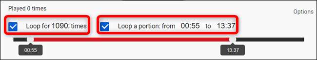 기본적으로 확장 프로그램은 동영상을 무한 반복합니다. 이를 변경하려면 확인란을 클릭하여 필요한만큼 반복하거나 비디오의 특정 부분을 반복합니다.