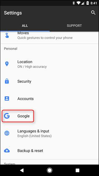 개인 섹션에 "Google"항목이 표시 될 때까지 아래로 스크롤합니다. 탭하세요.