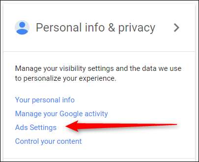 이 페이지에서 특히 한 가지 설정 인 광고 설정을 찾고 있습니다. 중앙 섹션에서 찾을 수 있습니다. 상단에서 세 번째 옵션이어야합니다. 클릭하세요.