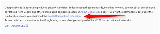 확장을 다운로드하려면 이 링크를 클릭 또는 광고 개인 최적화 페이지 하단으로 이동하여 "DoubleClick 선택 해제 확장"링크를 클릭하십시오. 일단 설치되면 활성화되므로 아무 작업도 수행 할 필요가 없습니다.