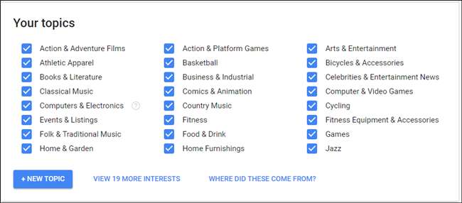개인 맞춤 광고 설정을 사용하고 싶지만 표시되는 내용을 더 잘 제어하려면 광고를 모두 선택 해제하는 바로 아래의 '내 주제'섹션에서 설정하면됩니다. 이러한 설정은 검색 기록에 따라 맞춤 설정되므로 옵션이 나와 매우 다르게 보일 수 있습니다.