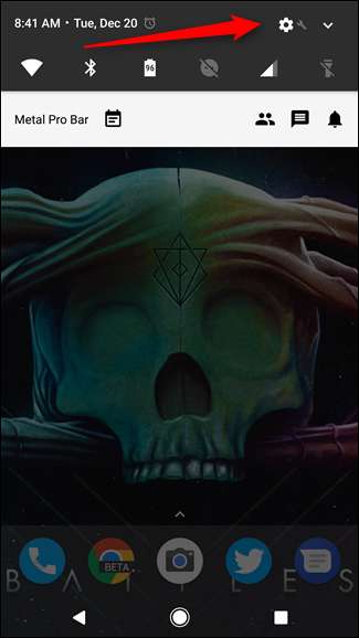 먼저 설정 메뉴로 이동하여 알림 창을 아래로 내리고 톱니 바퀴 아이콘을 탭합니다.