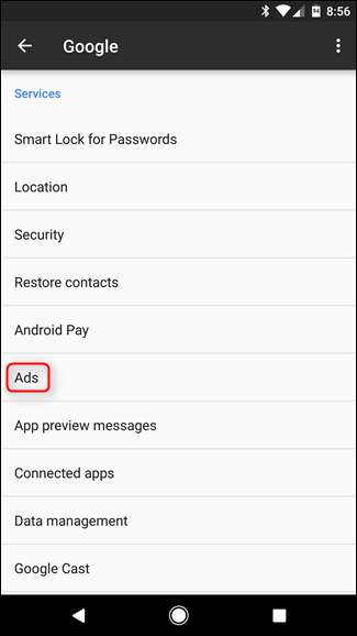 2 단계 (Android 사용자 만 해당) : 맞춤형 앱 광고 선택 해제