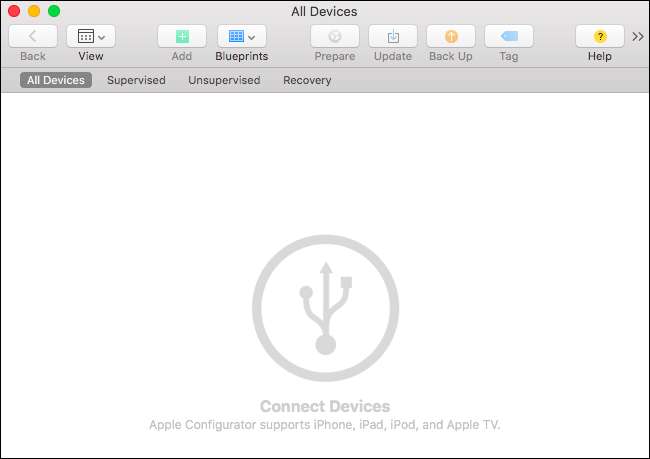 잠시 후 Apple Configurator 창에 연결된 기기가 표시됩니다.