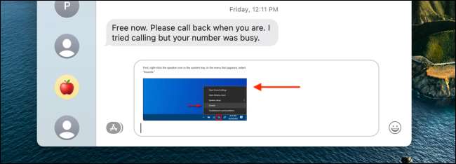 캡처 된 스크린 샷이 클립 보드에 있습니다. 메시지를 포함하여 Mac의 메시징이나 공유 응용 프로그램을 통해 누군가와 공유 할 수 있습니다 (아래와 같이).
