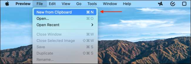 또는 미리보기에서 스크린 샷을 열어 더 이상 편집 할 수 있습니다. 미리보기 앱을 열고 메뉴 막대의 "파일"옵션에서 "클립 보드에서 새로 만들기"옵션을 선택하십시오. 또는 CMD + N 키보드 단축키도 사용할 수 있습니다.
