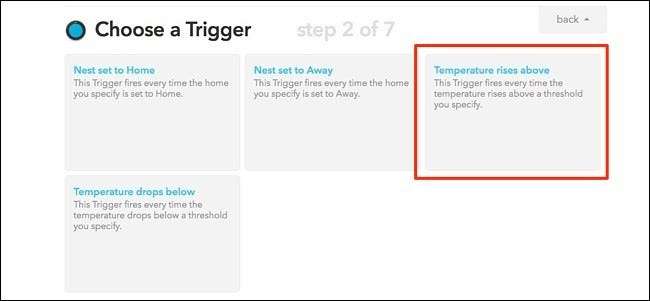 다음으로, "트리거 선택"페이지에서 "온도 상승"을 클릭합니다.