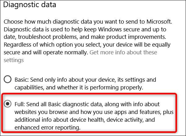 앱의 나머지 반발은 앱을 사용하려면 먼저 진단 및 사용 데이터를 "전체"로 설정해야한다는 것입니다. 우리는 이것이 어떤 사람들에게 한계점인지 이해합니다. 프라이버시는 유효한 문제입니다. 에 대한 전체 요약이 있습니다. Windows 10의 원격 분석 설정의 차이점 결정을 내리기 전에 더 많은 것을 알고 싶다면.