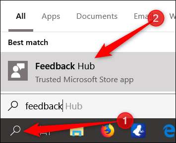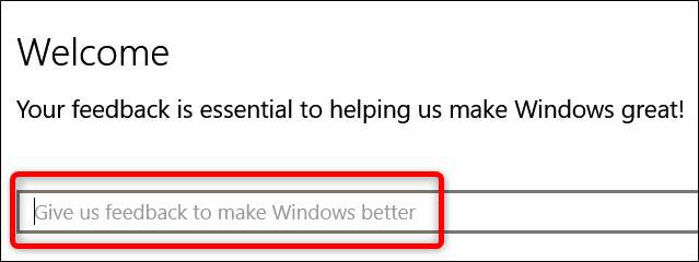 시작을 누르고 검색 상자에 "피드백"을 입력 한 다음 결과를 클릭합니다.