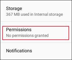 "Google Play Services"항목을 클릭하고 "권한"항목이 표시 될 때까지 스크롤 한 다음 클릭하십시오.
