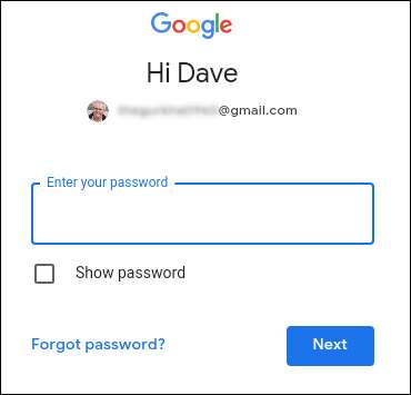 Google 암호를 입력하고 "다음"버튼을 클릭하십시오.
