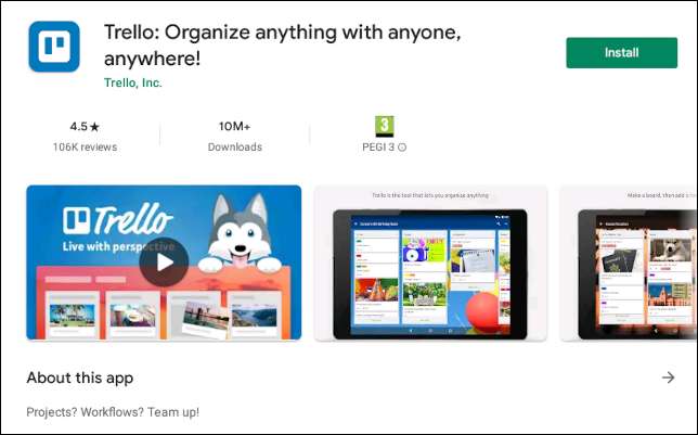 우리는 AN을 찾았습니다 앱 "trello" 녹색 "설치"버튼을 클릭했습니다.