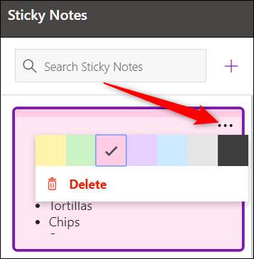 메모를 색상으로 구분하고 싶거나 더 이상 메모가 필요하지 않은 경우 점 3 개 메뉴 아이콘을 클릭하여 선택한 색상과 삭제 버튼을 표시합니다.