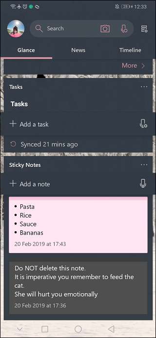 Microsoft Launcher를 설치 한 후 피드로 오른쪽으로 스 와이프하면 이동 중에 쉽게 액세스 할 수 있도록 모든 메모가 휴대 전화에 동기화됩니다.