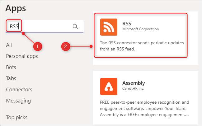 검색 창에 "RSS"를 입력 한 다음 결과에 나타나는 RSS 커넥터를 클릭하십시오.