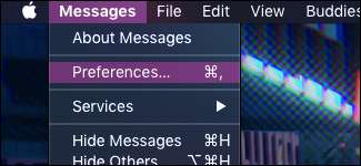 로그인 한 후 메뉴 표시 줄에서 "메시지"를 클릭하고 "환경 설정"을 선택하거나 Command + 쉼표를 눌러 메시지 설정을 엽니 다.