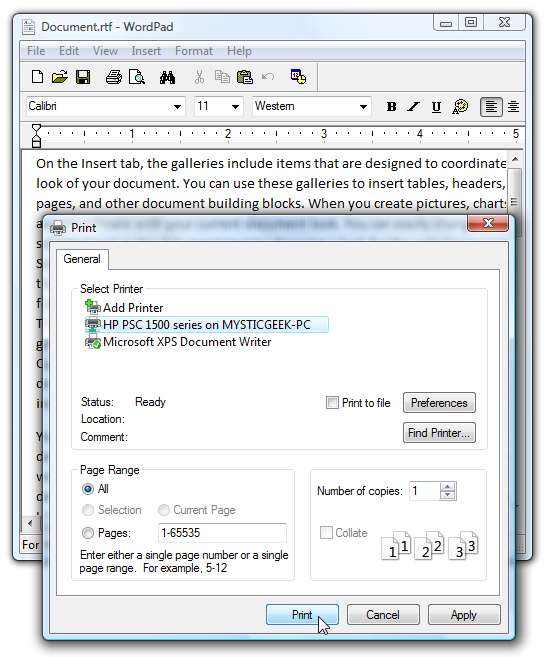 수행 할 수있는 또 다른 테스트는 테스트 문서를 열고 Windows 7 프린터로 인쇄 할 수 있는지 확인하는 것입니다.