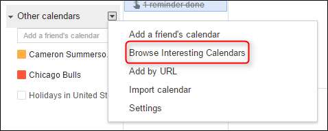 드롭 다운에서 "재미있는 캘린더 찾아보기"를 선택합니다.