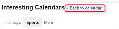 모든 팀을 선택한 후 페이지 상단의 '캘린더로 돌아 가기'링크를 클릭하면 캘린더로 돌아갈 수 있습니다.