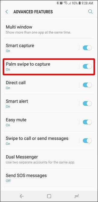 이 기능이 마음에 들지 않으면 설정> 고급 기능> Palm Swipe to Capture에서 비활성화 할 수 있습니다.