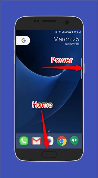 삼성은 S8 이전의 모든 휴대폰에서 전용 물리적 홈 버튼을 사용했기 때문에 스크린 샷을 찍는 방법이 약간 다릅니다. 볼륨 작게 및 전원을 사용하는 대신 전원 및 홈 버튼을 사용합니다. 둘 다 누르고 약 0.5 초 동안 누릅니다.