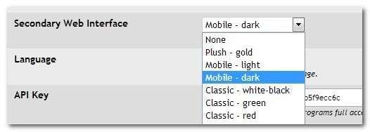 모바일 테마 중 하나를 설치했으면 WebUI로 이동하여 구성-> 일반-> SABnzbd 웹 서버로 이동합니다. 보조 웹 인터페이스 하위 섹션에서 다음과 같이 설치 한 모바일 스킨을 선택할 수 있습니다.