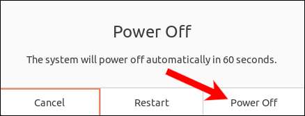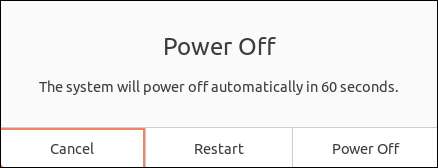 자동으로 꺼지기 전에 60 초에서 60 초까지 카운트하는 대화 상자가 나타납니다. 또한 취소, 재시작 또는 전원을 끌 수있는 옵션도 표시됩니다. 기다리지 않으려면 "전원 끄기"를 누르십시오.