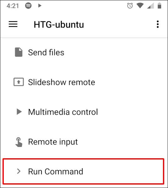 PC에서 페어링 요청을 수락해야합니다. 그런 다음 Android 앱에서 플러그인 목록에서 "명령 실행"옵션을 선택하십시오.