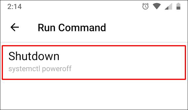 Ubuntu PC에 허용 된 명령을 선택하도록 프롬프트됩니다. "샘플 명령"을 클릭하고 "확인"을 클릭하기 전에 나타나는 목록에서 "종료"를 선택하십시오. Shutdown 명령은 Android 앱에서 실행 명령 메뉴의 옵션으로 나타납니다. 언제든지 탭하여 Ubuntu PC에서 전원 꺼진 프로세스를 시작하십시오.
