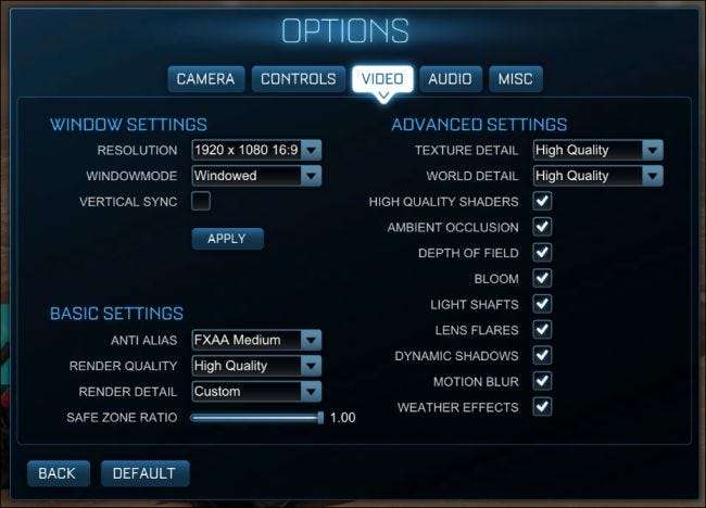 게임 설정의 일부 항목이 해당 게임에 고유 할 수 있다는 점에 유의해야합니다. 예를 들어 Rocket League의 경우 날씨 효과가 중요한 역할을하지만 Borderlands 2와 같은 게임에서는 "Bullet Decals"및 "Foliage Distance"와 같은 해당 게임 고유의 효과를 볼 수 있습니다. 종종 이것들은 좀 더 자명 할 것입니다.