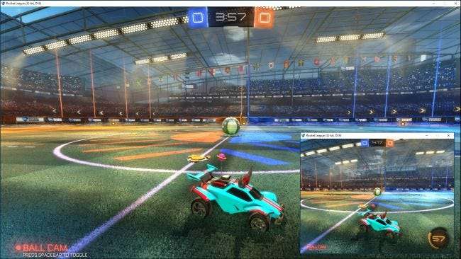 예를 들어 다음 스크린 샷에서 Rocket League가 모니터의 기본 해상도 1920 × 1080에서 실행되는 모습을 확인한 다음 640 x 480에서 실행되는 게임의 예를 삽입했습니다. 훨씬 더 작습니다. 전체 화면으로 표시하면 DVD와 Blu-Ray를 비교하는 것과 같이 훨씬 낮은 품질로 보입니다.