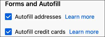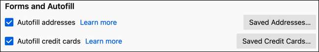 Firefox의 자동 필수 기능을 사용하려면 먼저 활성화해야합니다. 운 좋게도 주소와 신용 카드를 별도로 사용할 수 있습니다. 이것은 하나 또는 다른 하나를 위해 사용하지 않으려는 경우 편리합니다.