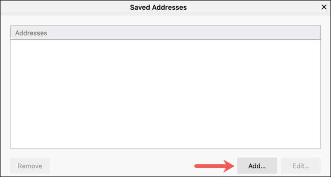 주소, 전화 번호 또는 이메일 주소를 추가하려면 "저장된 주소"를 클릭 한 다음 "추가"를 누릅니다.