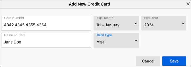 신용 카드에 대한 세부 정보를 입력하고 "저장"을 클릭하십시오. 그런 다음 카드가 저장된 신용 카드 목록에 표시됩니다.