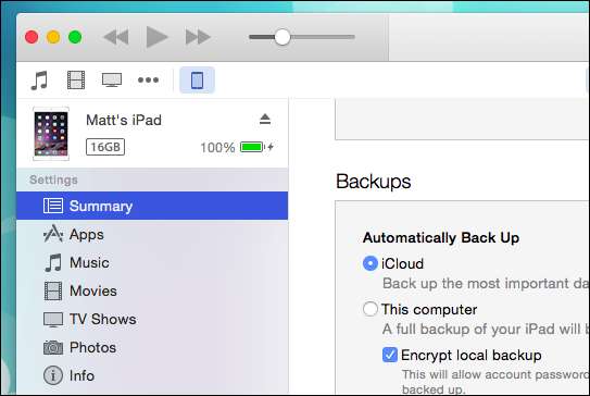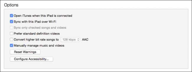 이제 요약 설정 아래에서 옵션으로 스크롤하여 "Wi-Fi를 통해이 iPad와 동기화"가 선택되어 있는지 확인합니다 (분명히 iPhone이있는 경우 "iPhone"이라고 표시됨).