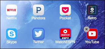 또한 왼쪽 상단 모서리에있는 회색 "X"를 탭하여 앱을 제거 할 수 있습니다. 이는 iPhone, iPad, 심지어 OS X의 Launchpad에서와 같은 App Store 앱 제거 방법입니다. 또한 공간이 충분하지 않으면 iTunes에서 선택한 앱 그룹을 다른 홈 화면으로 이동할 수 없습니다.