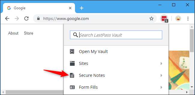 원하는만큼 메모를 저장하고 폴더로 정렬 할 수도 있습니다. 노트를 찾으려면 LastPass 아이콘> 보안 노트를 클릭하거나 LastPass 스마트 폰 앱의 볼트에서 "보안 노트"를 선택합니다. LastPass의 검색 상자를 사용하여 모든 보안 메모를 검색 할 수도 있습니다.